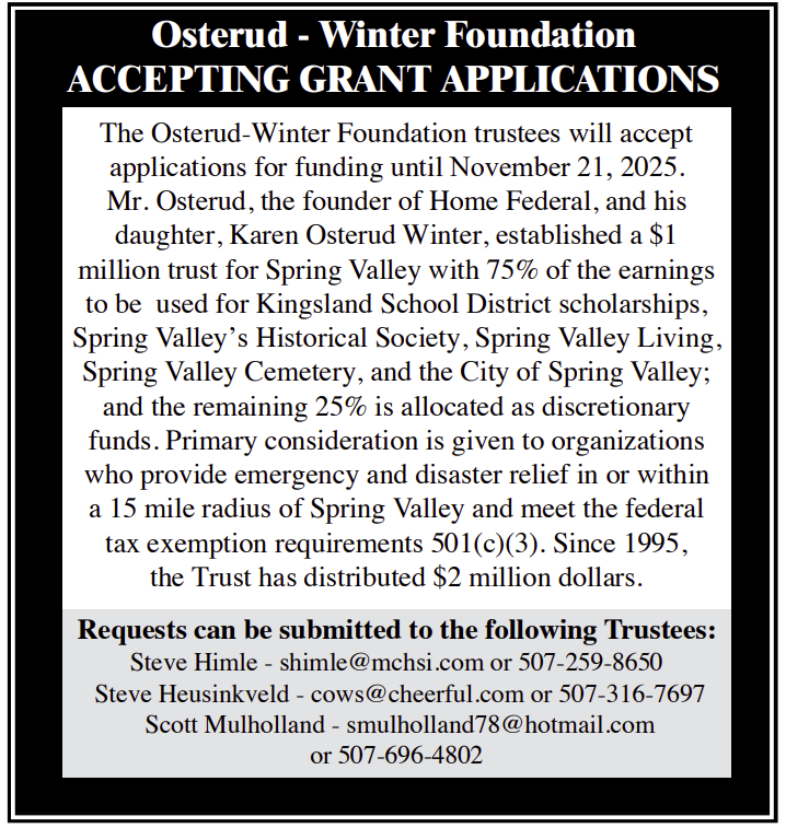 The Spring Valley Area Food Shelf has seen a 20 percent increase in average household visits through the first nine months of 2025 compared to 2024.