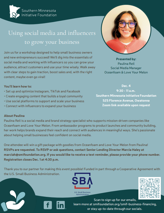 Grant awards will be limited and approved on a competitive basis. Not all eligible businesses will receive a grant. Primary business operations must be located in SMIF’s region, which includes 20 counties and one Native nation. Businesses must earn $750,000 or less in gross revenue (based on prior year’s (2024) taxes) to be eligible. Additional eligibility requirements are listed on SMIF’s website.